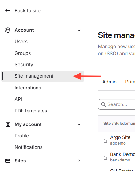 - Click Site Management