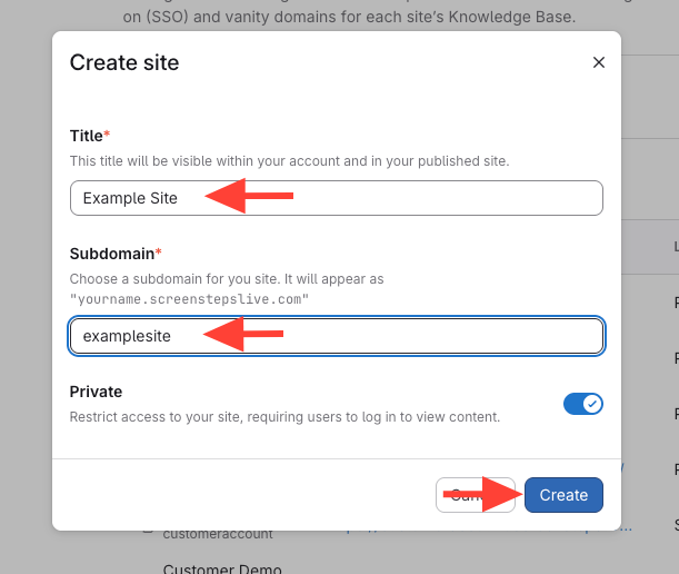 - Click Create Site