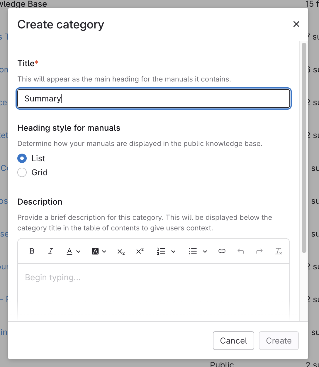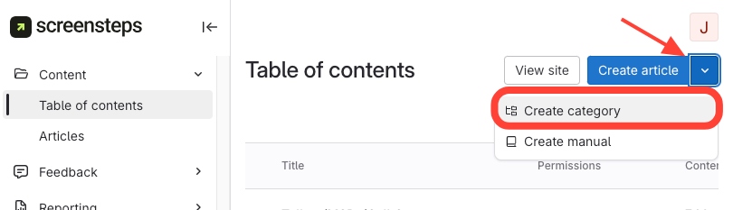 - Select Create Category.