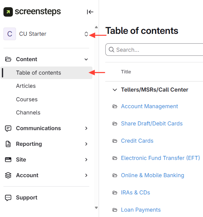 - Go to the content management area.