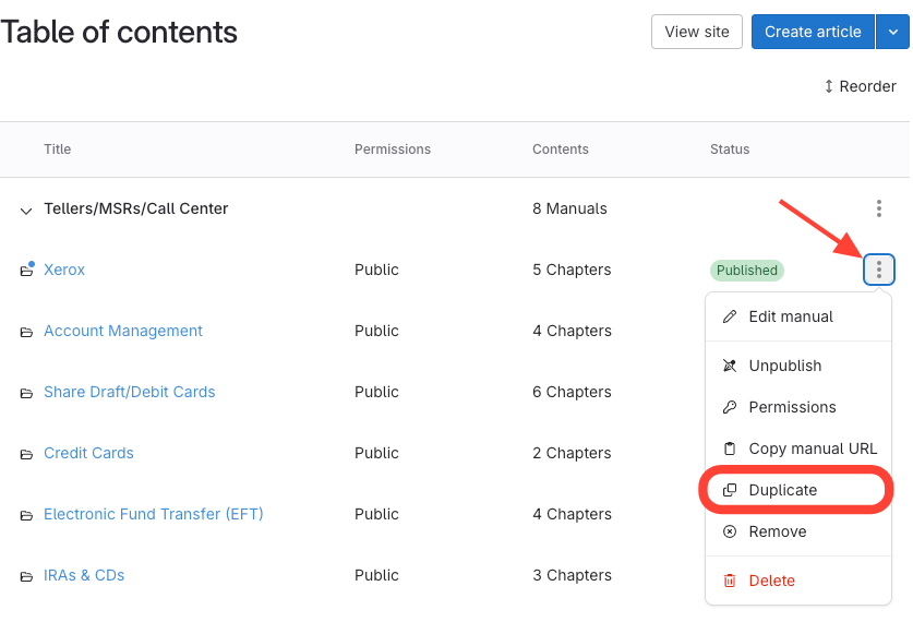 How to Duplicate a Manual and Add it to Another Site