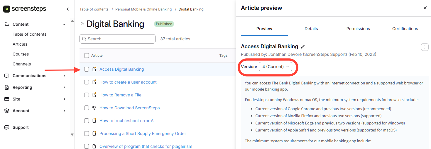 How to View Revisions of an Article (i.e. Differences Between Article Versions)