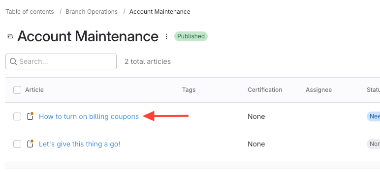 How to add an article to a manual from the All Articles list