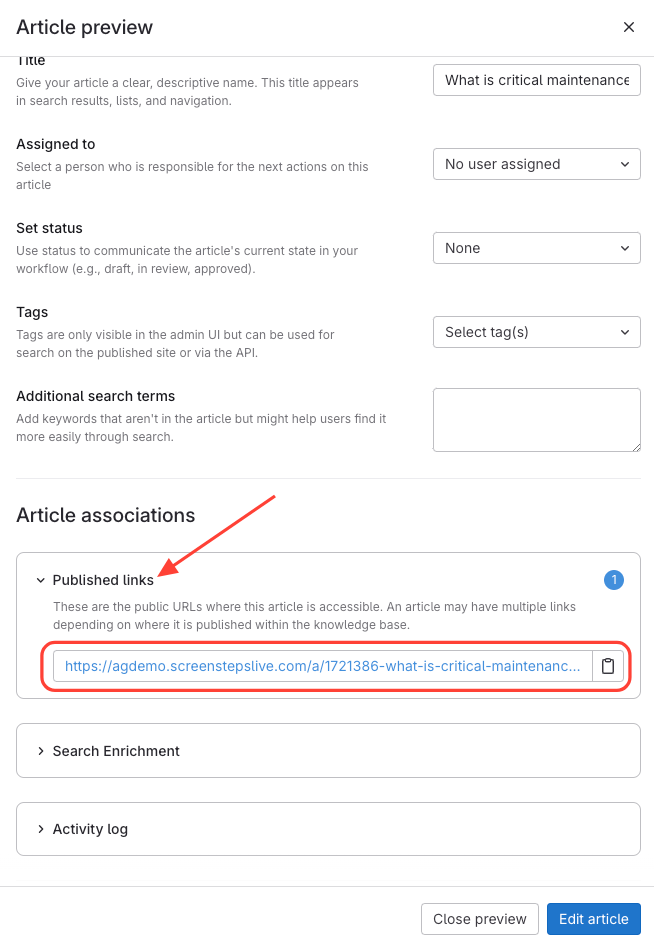 How to Copy the Article's Published URL from Content Management Area