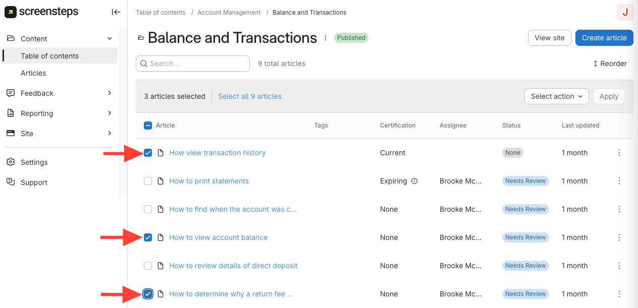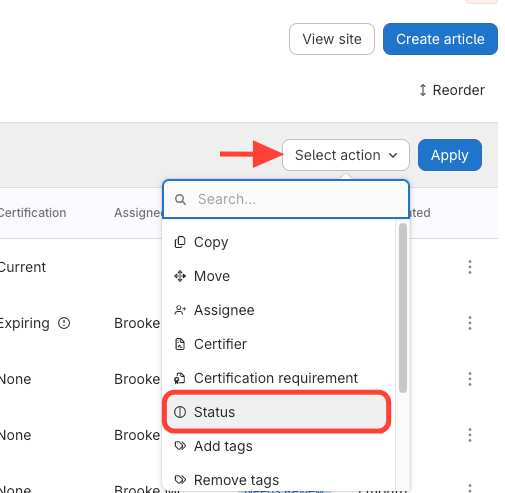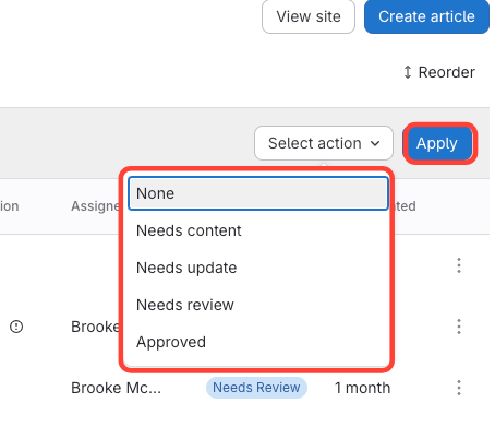 How to Change the Article Status for Multiple Articles at Once (i.e. Bulk Actions)