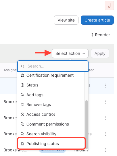 - You can navigate to articles by clicking the Articles on the left-hand side and either searching for or filtering specific articles.