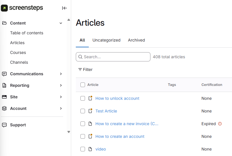 • Navigating to the All Articles section and scrolling/searching for the Article.