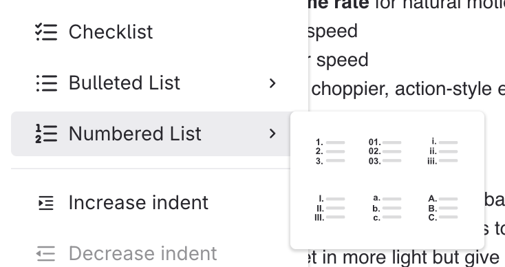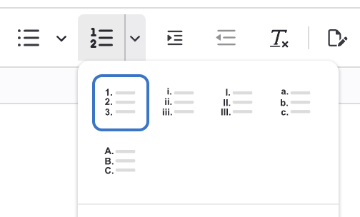 - Roman Numeral (i. ii. iii. / I. II. III.)