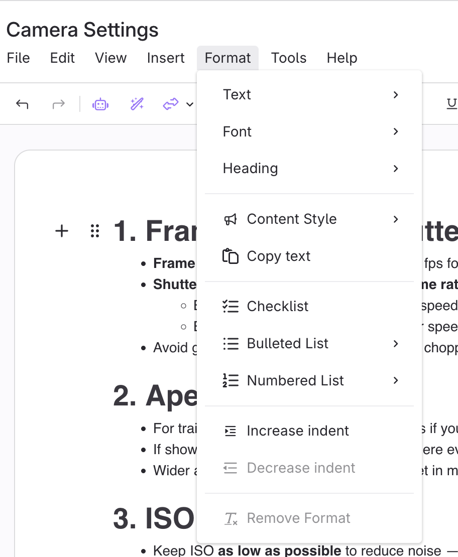 Formatting options within an article refer to the various ways you can change the appearance and structure of text and content. These options help organize information, highlight important points, and make articles easier to read and understand.