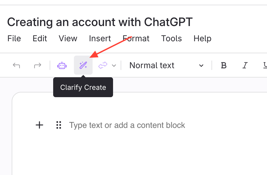 - Open Clarify Create in a new article