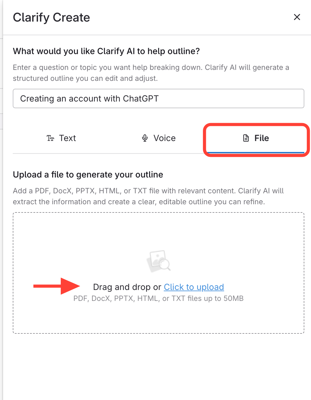 How to Bring in Existing Content using Clarify Create (Word, Text, PDF)