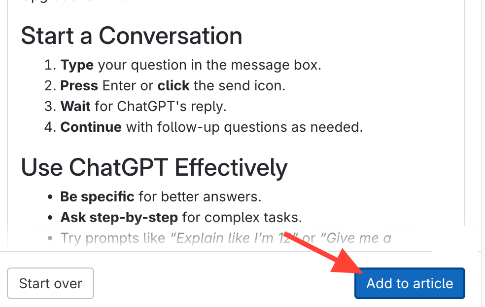 - Select Add to Article.
