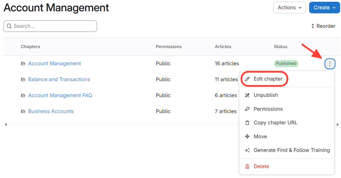 the action menu next to the chapter.
