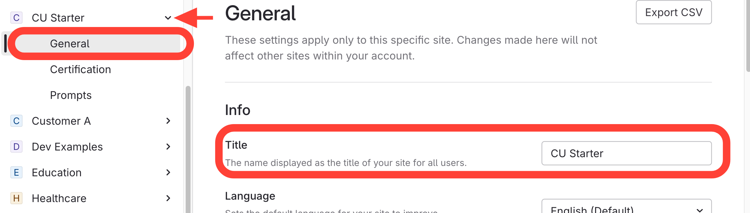 - Edit the site title.