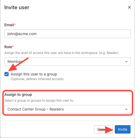 1. Check box > Assign to Group > Invite