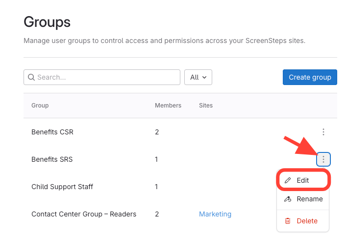 Note: Adding Admin to a group will NOT affect their permissions since Admin already have full permissions. You may want to add an Admin to a group if you want to manage how you send notifications to them or evaluate viewing analytics.