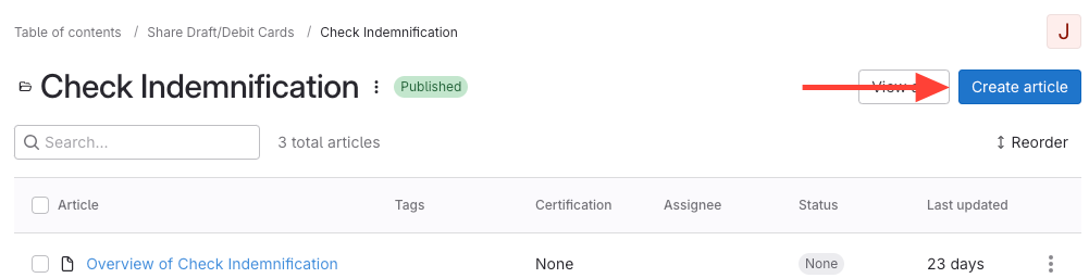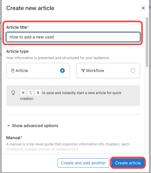 4. Enter the article title > Click Create Article