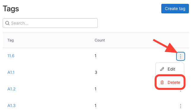 Click Action Menu to the Right of the Tag > Click Delete