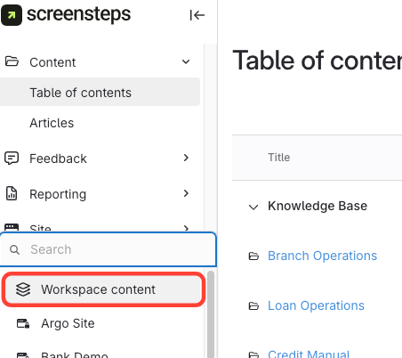Select Workspace Content