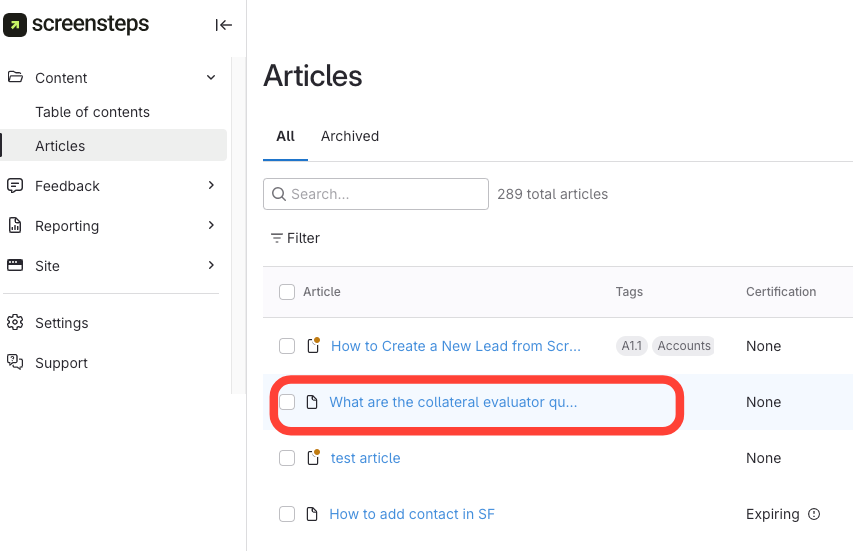 How to Change the Certification Requirement for Multiple Articles at Once (i.e. Bulk Actions)