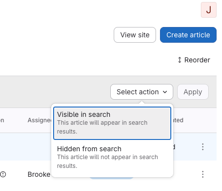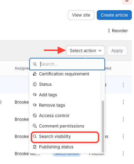 How to Change the Search Visibility to Multiple Articles at Once (i.e. Bulk Actions)