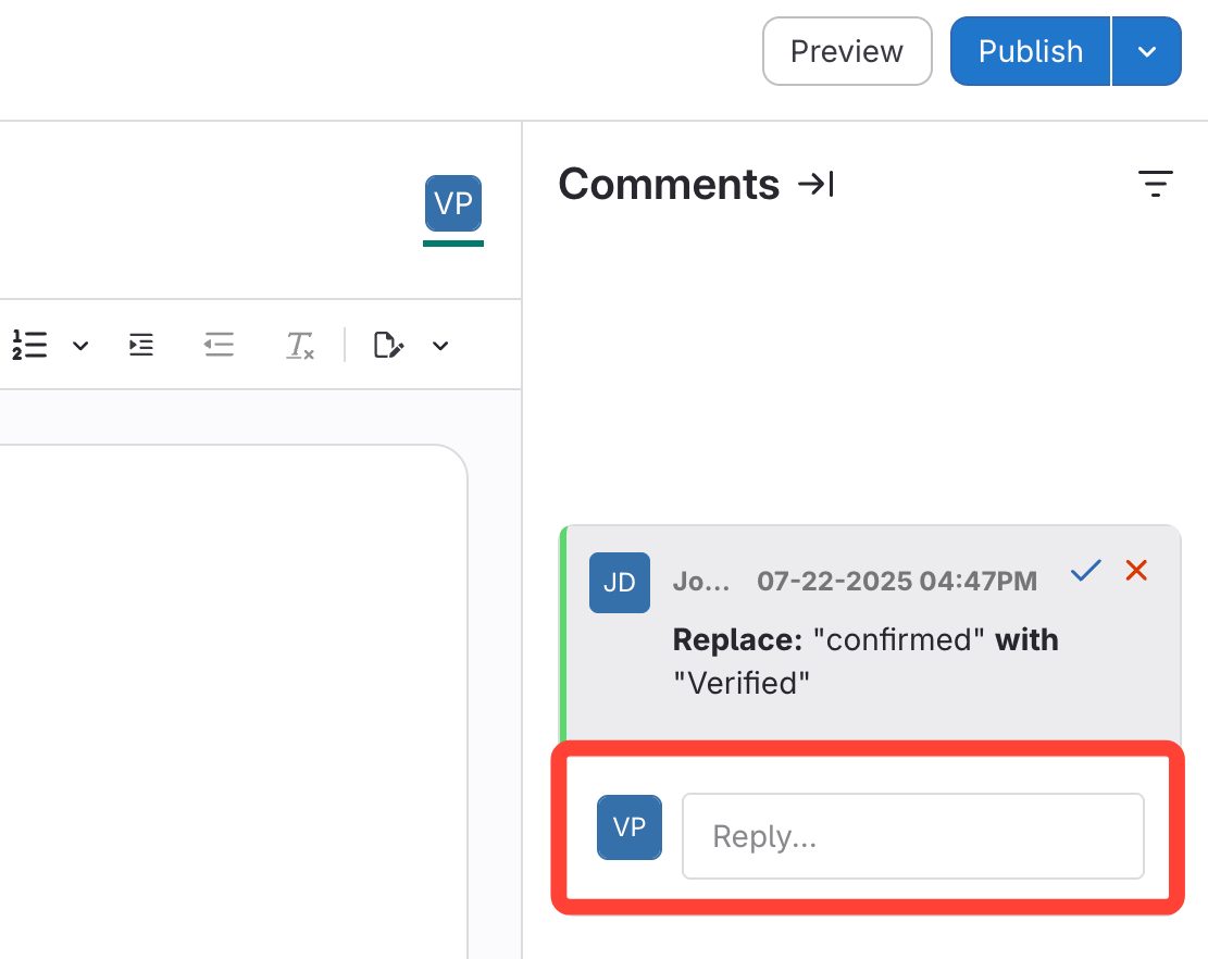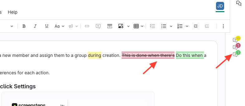 - Click the highlighted suggestion (i.e. tracked change) in the article