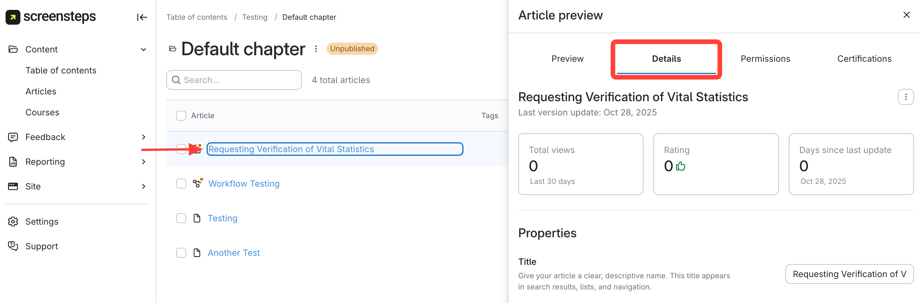 - Navigate to Details Tab in Article Preview