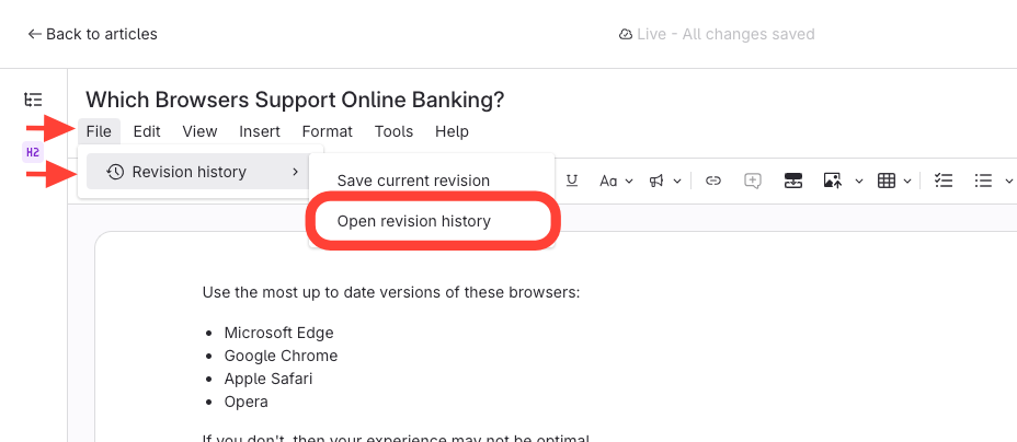 How to View Revisions of an Article (i.e. Differences Between Article Versions)