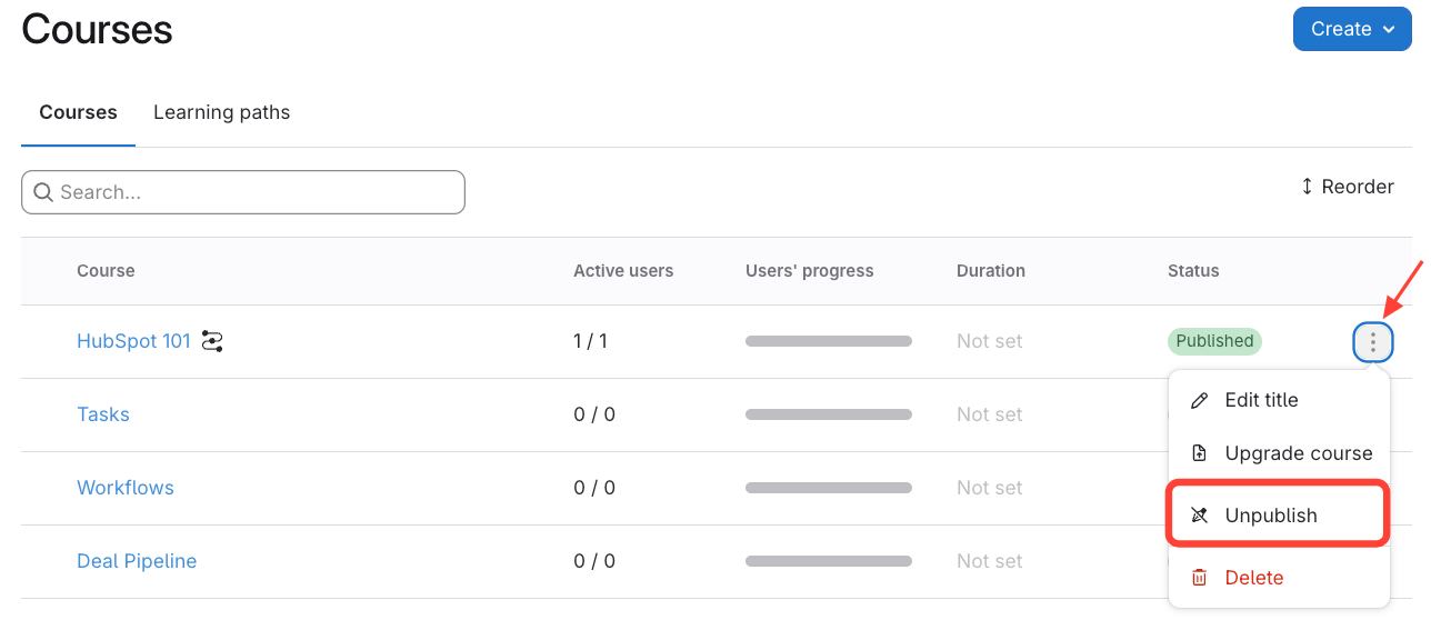 - Select Unpublish (this option will only show up if the course is published).