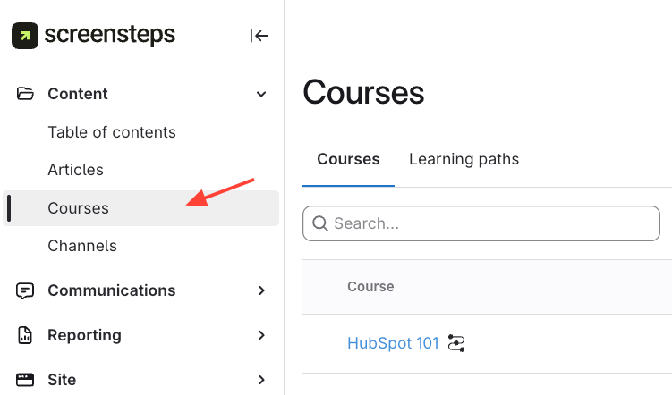 - Click the Courses tab on the left.