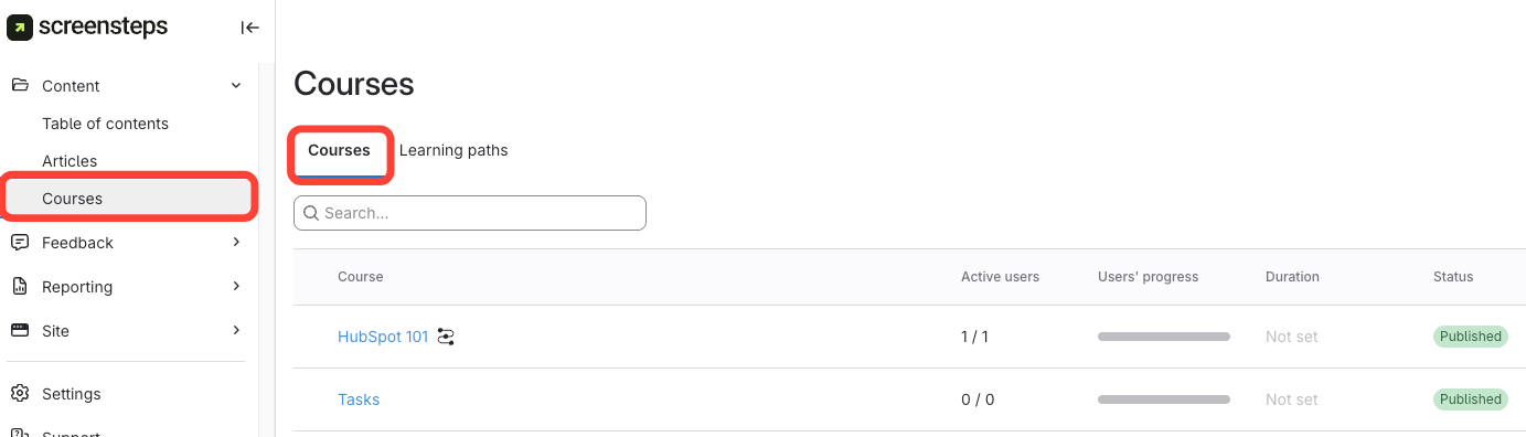 - Go to the Courses tab on the left.