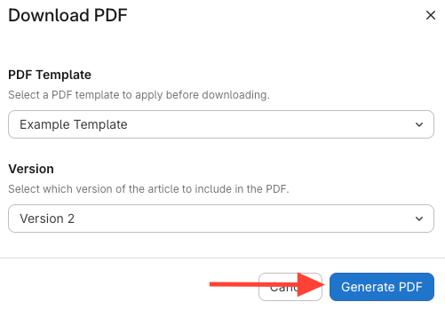 How to Download a PDF Version of your Article, Chapter or Manual from the Web Browser Application