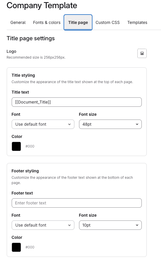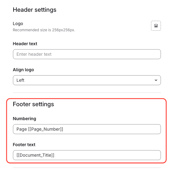 Header, Footer, Title Page Header and Title Page Footer Fields