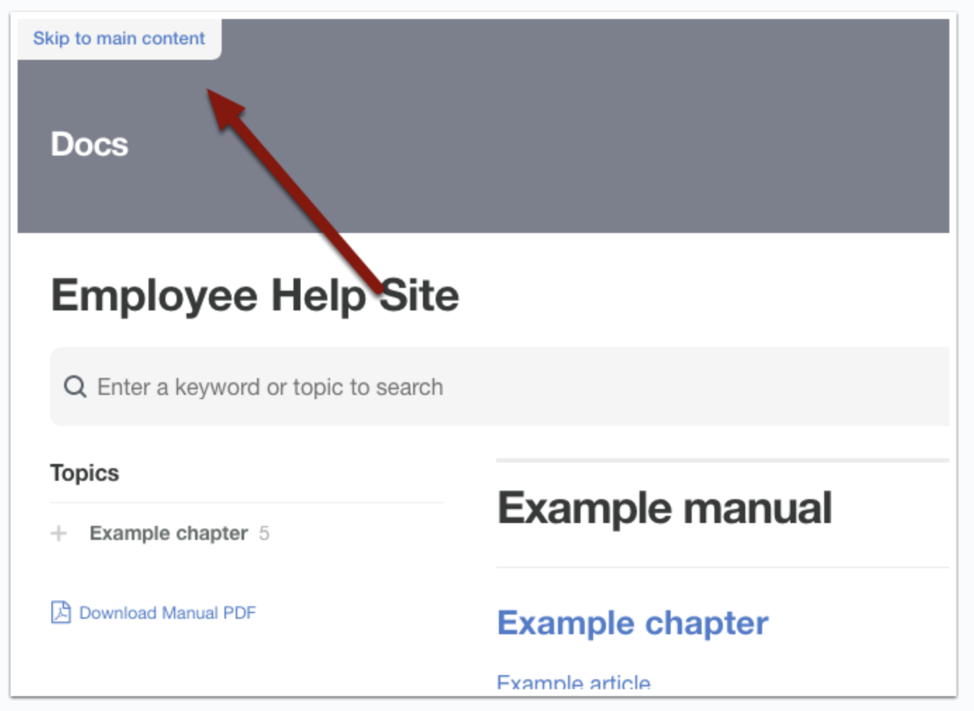 ScreenSteps now includes skip navigation links, allowing keyboard users to bypass repetitive navigation and jump directly to the main content. This feature is especially helpful for users of screen readers and those who navigate without a mouse.