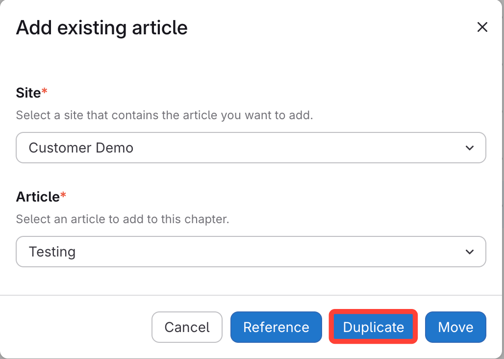 - Click Duplicate to add the article.