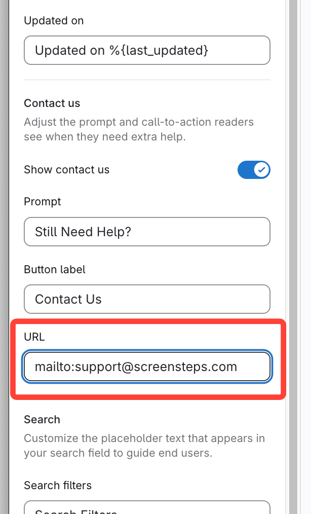 How to Change the URL for the Contact Us Button