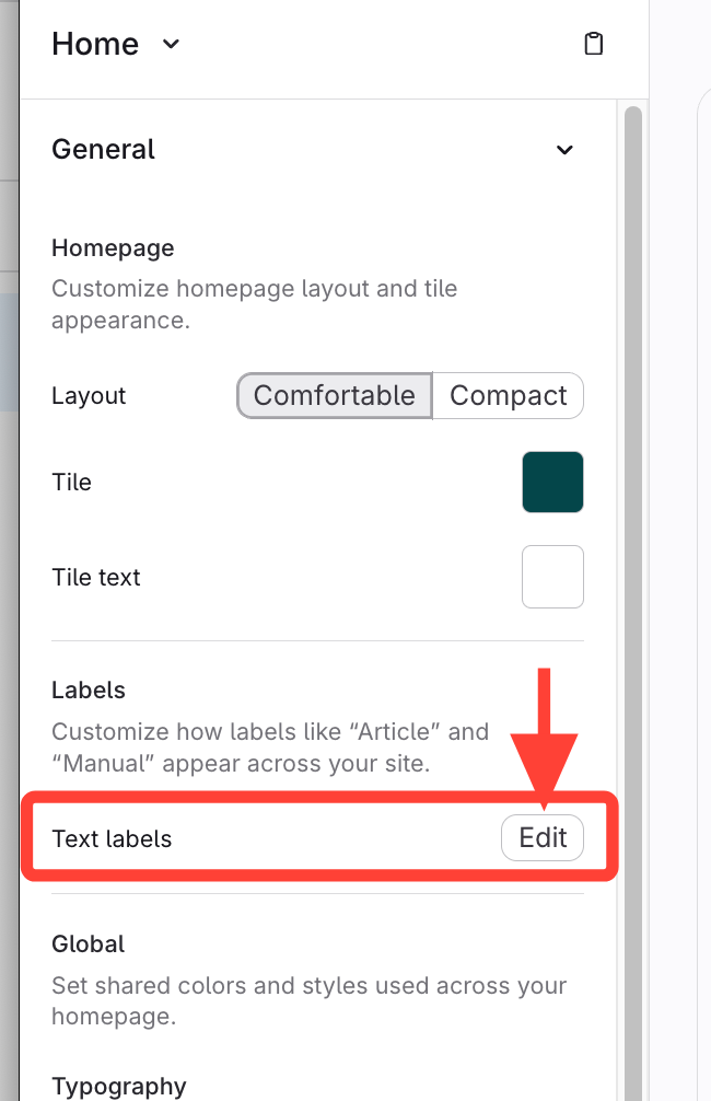 Or expand General > Edit next to Text Labels