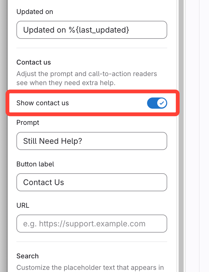 - Update Contact Us URL field