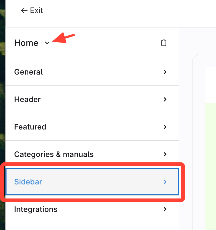 Confirm Home is selected > Open Sidebar