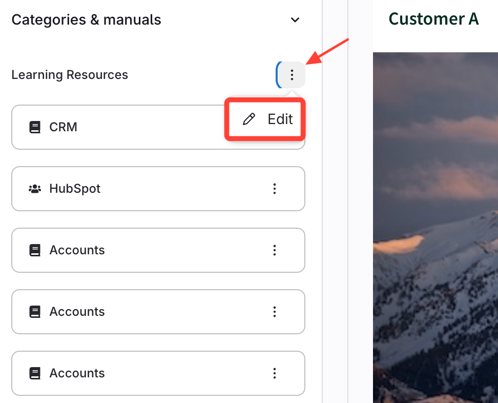 - Click the action menu (three dots) next to the category.