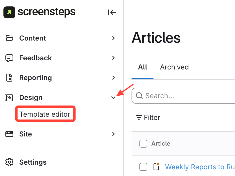 - Navigate to Template Editor