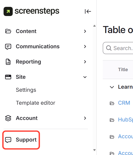 - Click the support button in your admin site.