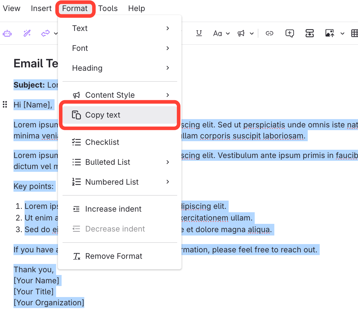 Click Format > Copy text