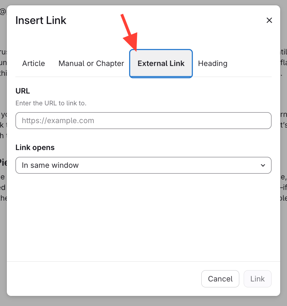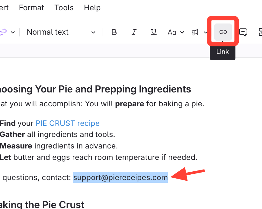 - Select text and open Link options
