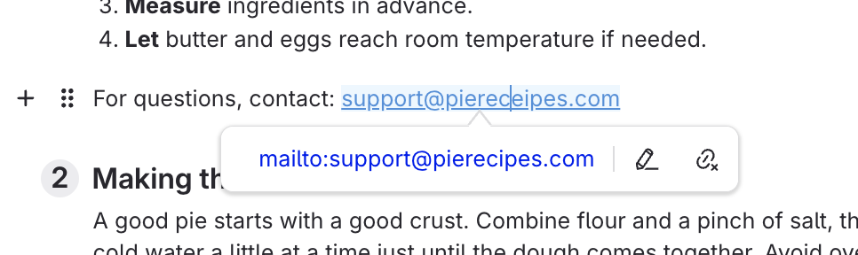 After you publish the article, that text will be a hyperlink. When you click the hyperlink, it will open up the reader's email application and include that email in the To field.