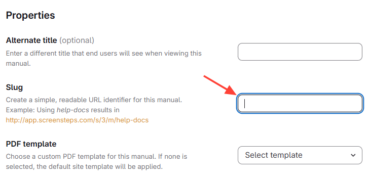 After you select Edit Manual, you will be able to edit the manual's slug.