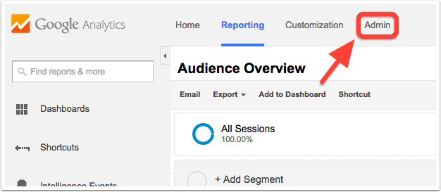 - Go to your Admin tab in Google Analytics