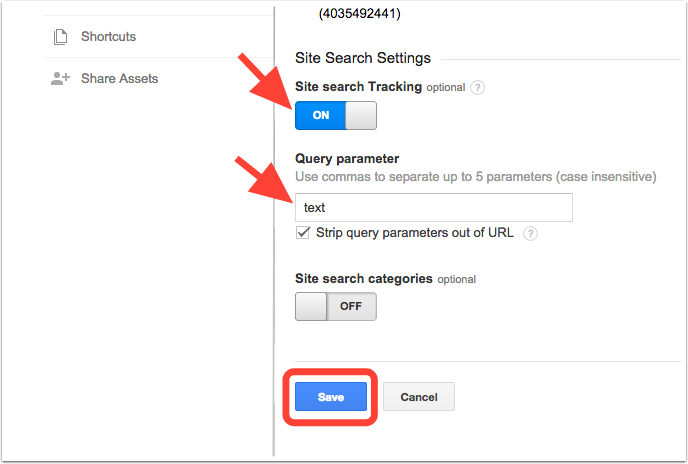 Turn Site search Tracking on