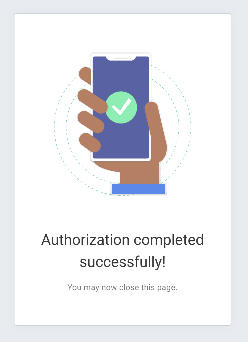 - A new browser tab will open up to complete the authorization. When you see the "Authorization completed successfully!" message you can close this tab.