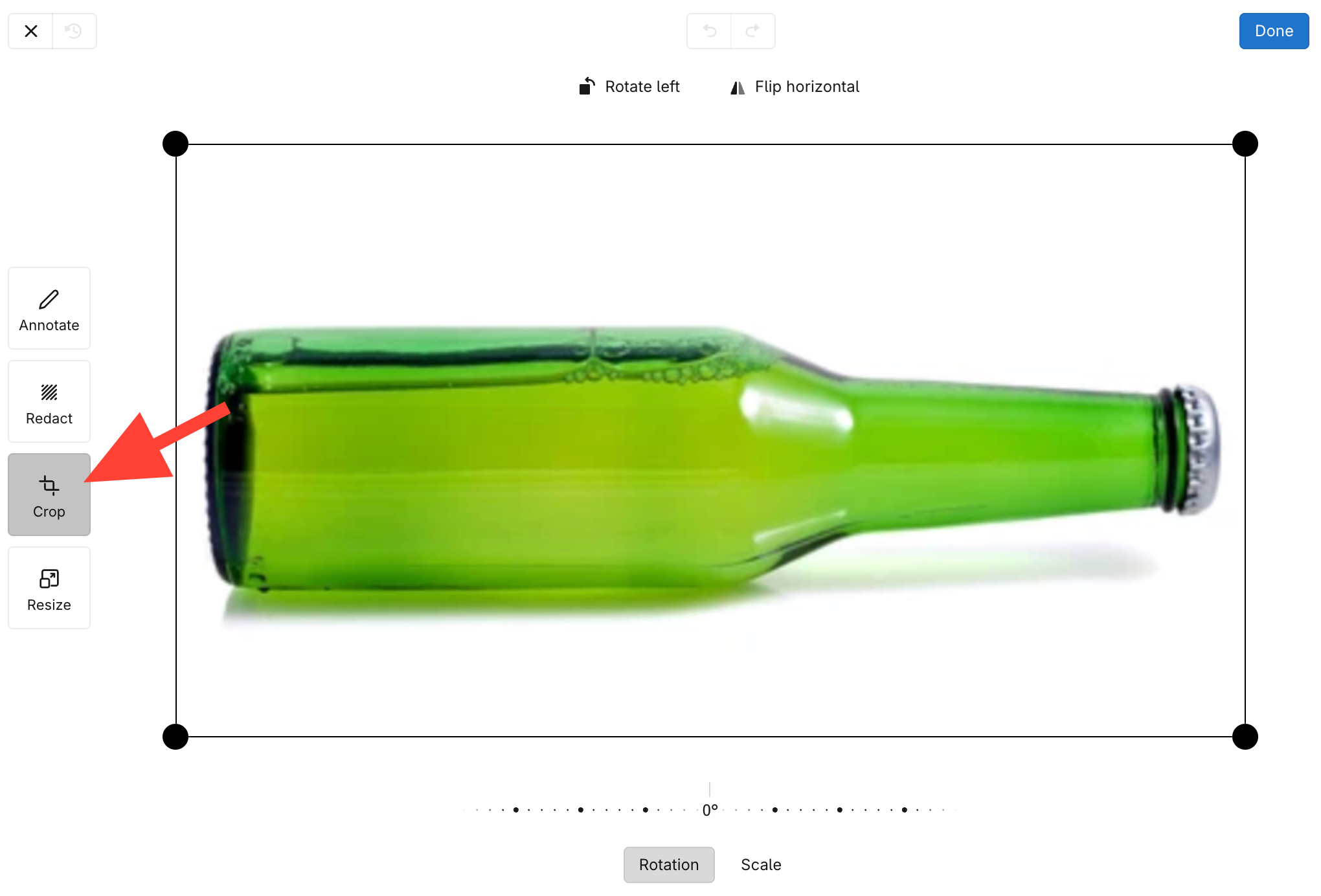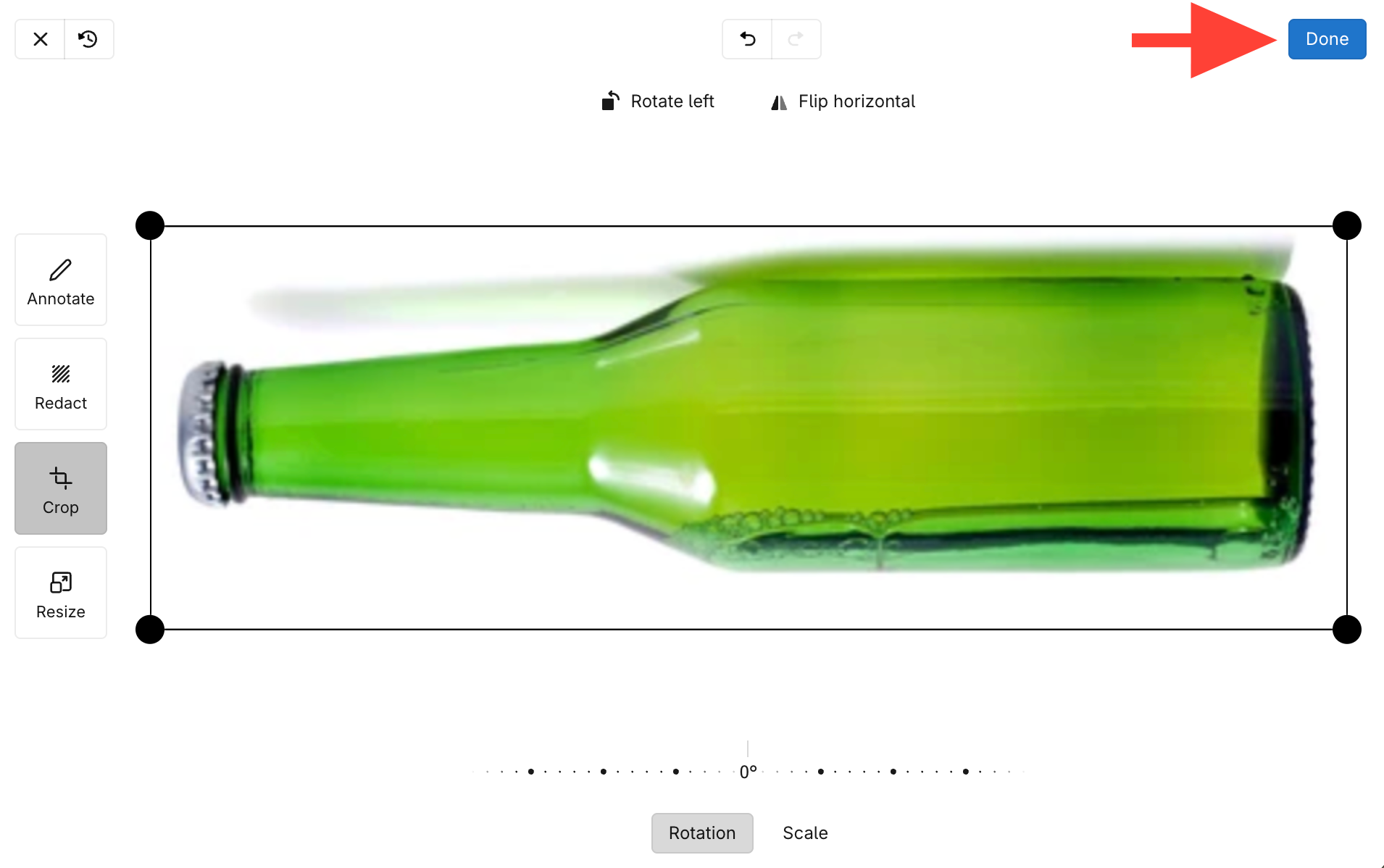 What you will accomplish: You will rotate an image using the crop or annotate tools.